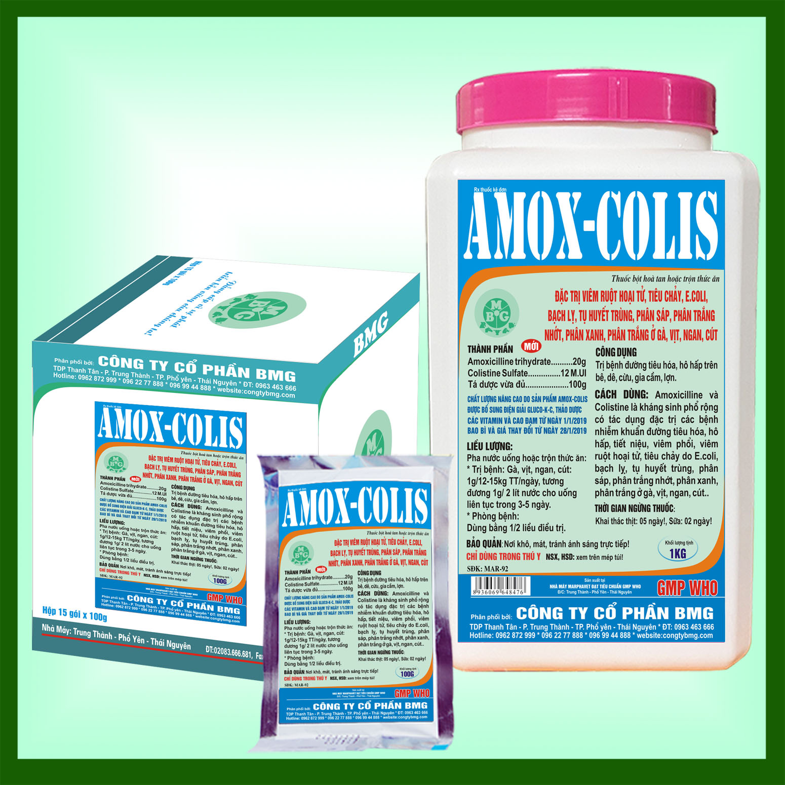 Đặc trị: Các bệnh nhiễm khuẩn bệnh đường tiêu hóa và đường hô hấp, tiết niệu, viêm phổi, viêm ruột hoại tử, tiêu chảy do E.coli, bạch lỵ, tụ huyết trùng, phân sáp, phân trắng nhớt, phân xanh, phân trắng ở gà, vịt, ngan, cút.
